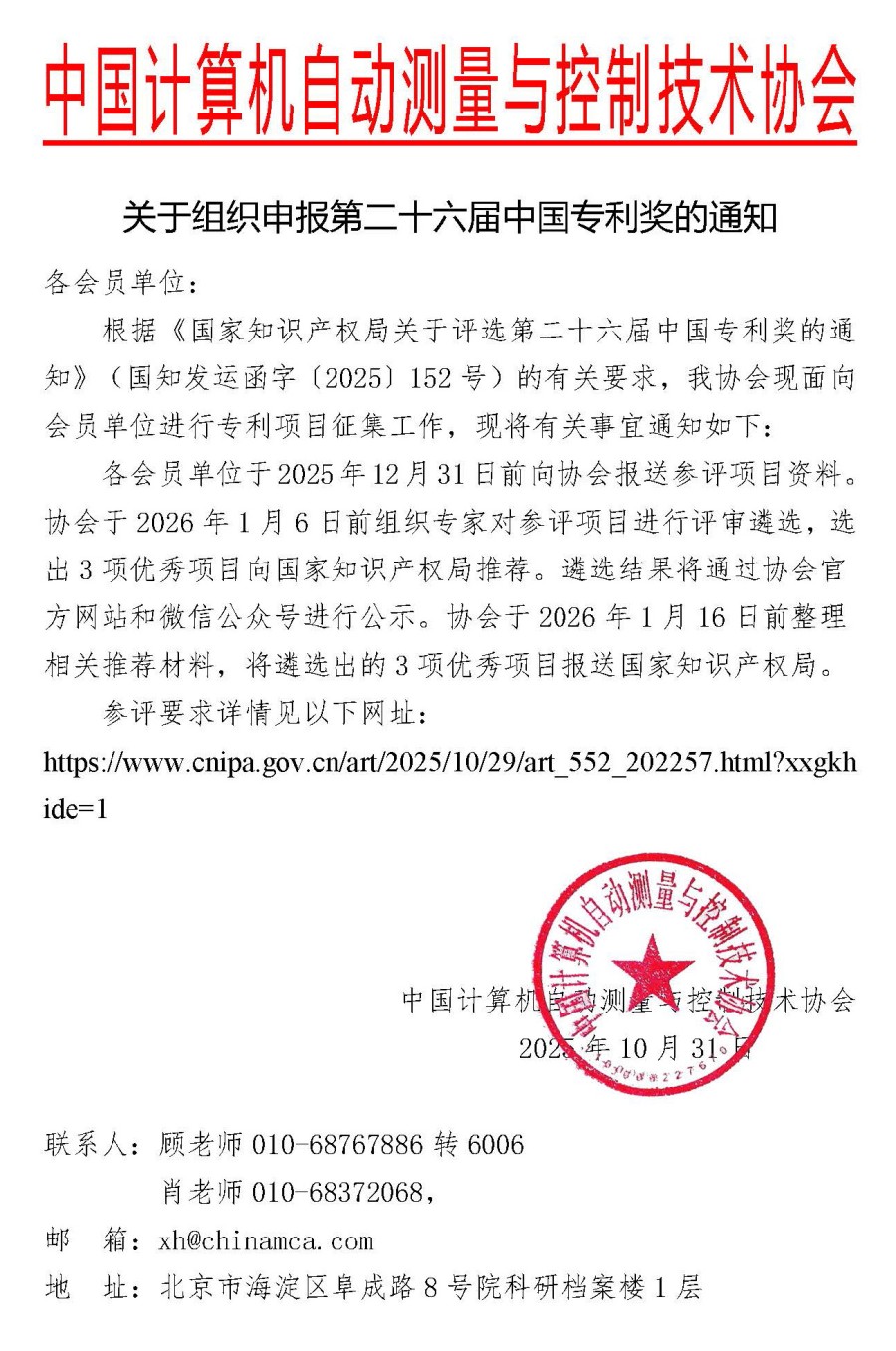 核心提示:根据《国家知识产权局关于评选第二十六届中国专利奖的通知》(国知发运函字〔2025〕152号)的有关要求,我协会现面向会员单位进行专利项目征集工作。